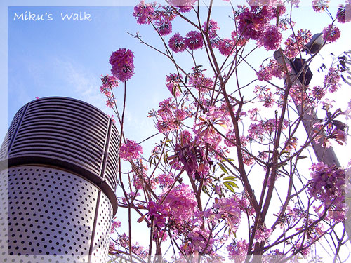 花壇一景,非常美麗的粉紅花樹(可是我不知道是什麼植物...)