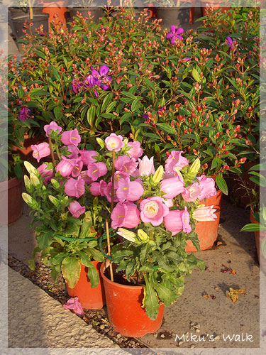 前方那兩盆有如鈴鐺一般的粉紅色花朵真是可愛極了!